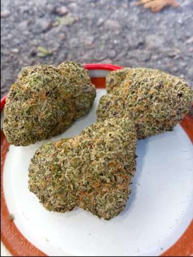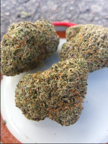 Ice Cream Cake is rather dominant on the indica side with a ratio to sativa of 75%:25%. Its THC content level averages between 20% to 25% so it is rather potent, just like its parent, Wedding Cake, which itself averages highs of 25% in THC content as well. Its other parent, Gelato #33 (itself a cross between other dessert strains, Sunset Sherbert and Thin Mint Girl Scout Cookies), is a bit lower at 22% potency on average, though both parent strains, two indica dominant hybrids in themselves, can pack quite a punch, which would explain the heavy sedated experience users can get from Ice Cream Cake.