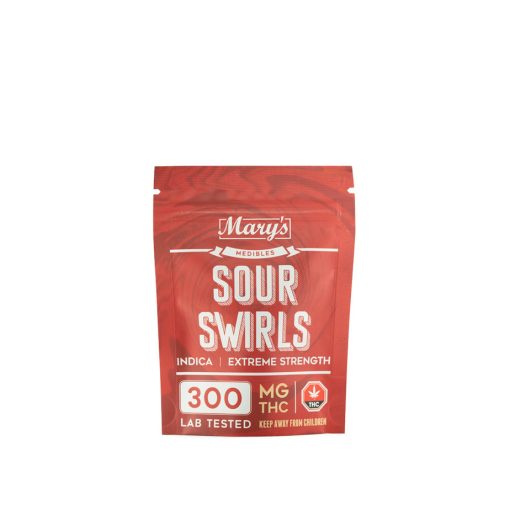 Mary’s Indica Sour Swirls (Extreme Strength) are a delicious gummy candy dusted in a layer of sour sugar for an added zing! These tasty candies are infused with 75mg of THC each, and made with premium indica cannabis flowers for a relaxing and soothing ride. Each pack of Sour Swirls contains four gummies and a total of 300mg of THC.