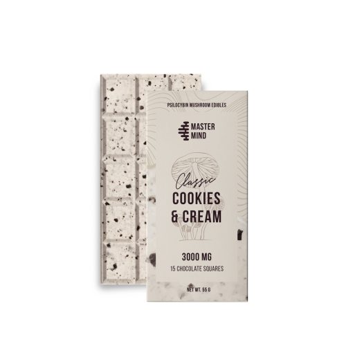Savor the divine fusion of creamy white chocolate and decadent cookie crumbs in our MasterMind Cookies & Cream Funghi Bar. Infused with a premium blend of Psilocybe Cubensis magic mushrooms, each square contains 200mg of psilocybin, offering a journey of heightened perception and introspection. Elevate your consciousness, embrace euphoria, and ignite your creativity with every delicious bite.