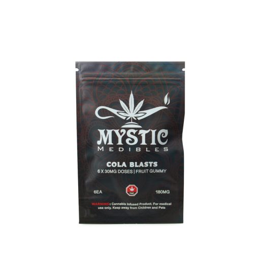 Mystic Medibles is a local British Columbian based procurer of fine cannabis infused edibles. They pride themselves in providing Canadians with some of the most high-quality, afforadable and potent medibles available on the market. Their proprietary recipe uses premium coconut oil as a base for their cannabis infused edibles to ensure the most efficient and fast-acting cannabinoid absorption. Every pack of Mystic Medibles Cola Blasts contains six delicious cola gummies that are infused with 30mg of THC each for a total of 180mg of THC for each pack! Mystic Medibles contains a wide range of flavours from their Peach Buzzys to Grape Shock gummies, so you’ll always be able to find your favourite!
