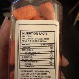 | DOSAGE | Each gummy contains 40mg of THC. Start with 1 piece and allow 60-90 minutes for full effects to kick in. |